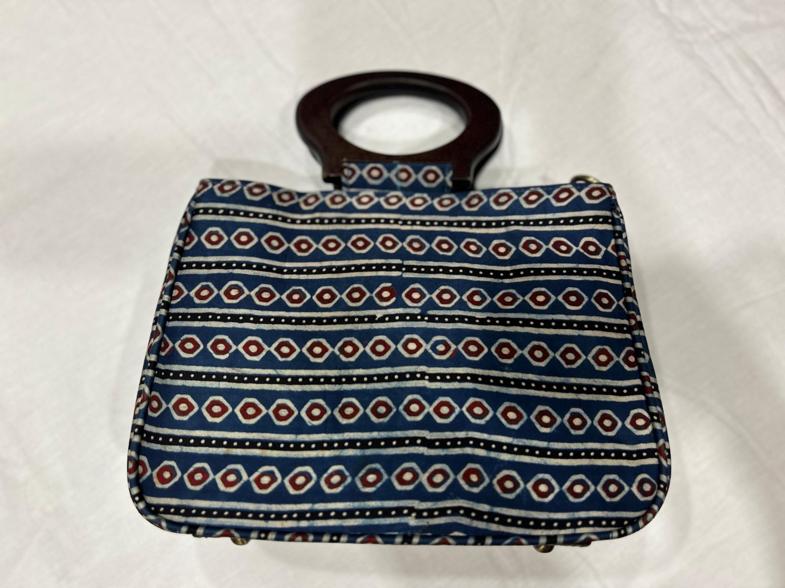 Modal silk handbag with wooden handles.
